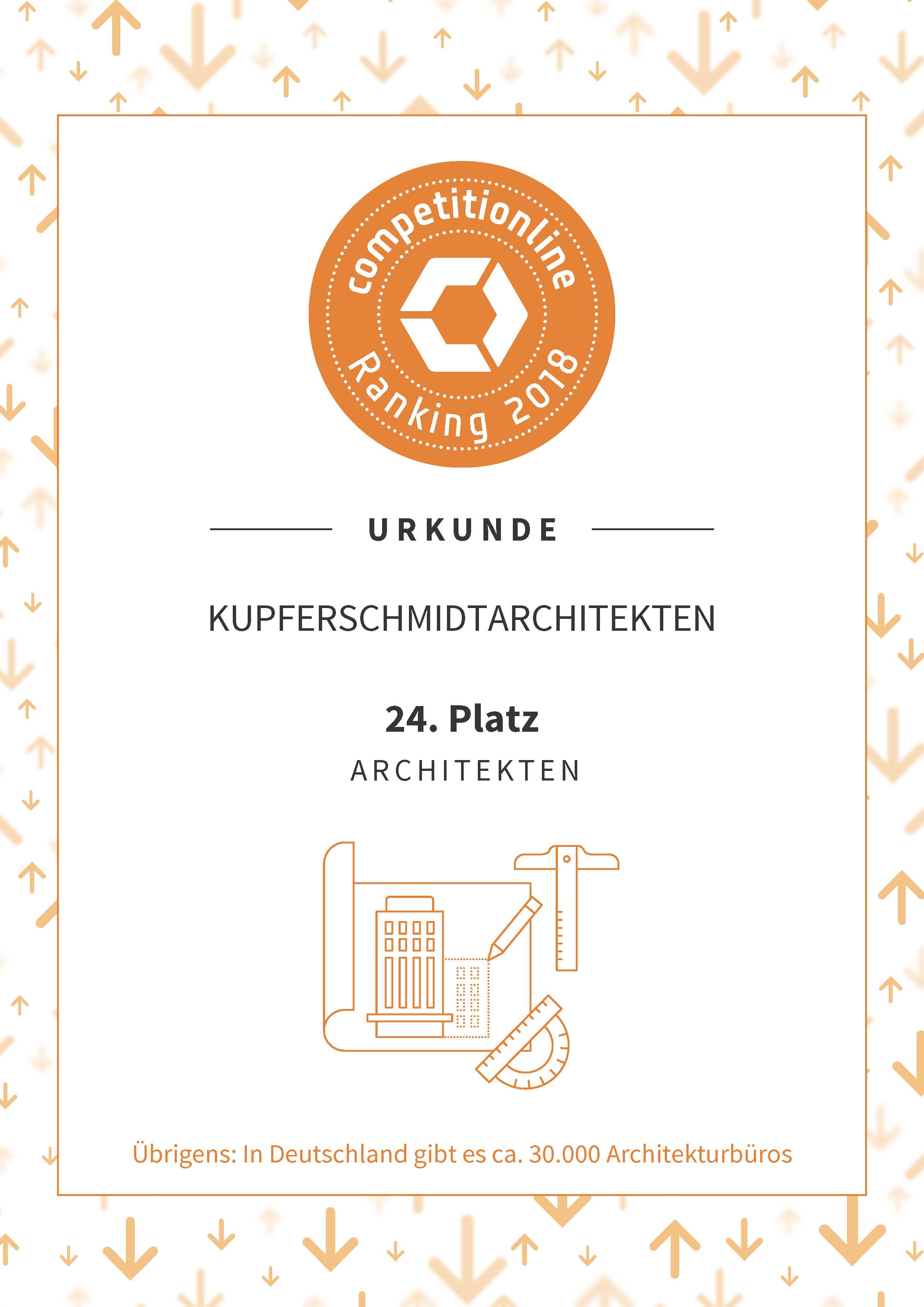 competitionline Ranking ist das einzige Architekten-Ranking im deutschsprachigen Raum, das ausschließlich auf Wettbewerbsergebnissen basiert. Einmal pro Jahr wertet die competitionline-Redaktion sämtliche auf competitionline.com veröffentlichten Wettbewerbsergebnisse aus Deutschland und dem Ausland aus -Stand Ranking 2018 mehr als 3.000 Ergebnisse- und erstellt daraus das Ranking der im Wettbewerb erfolgreichsten Büros.