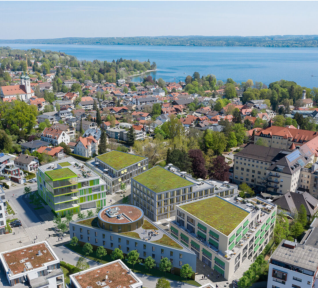 Rund um den Bahnhof in Tutzing am Starnberger See entsteht nach der Auflösung des ehemaligen Roche-Pharmazie Areals ein neuer Wohn- und Gewerbepark mit mehreren Clustern.