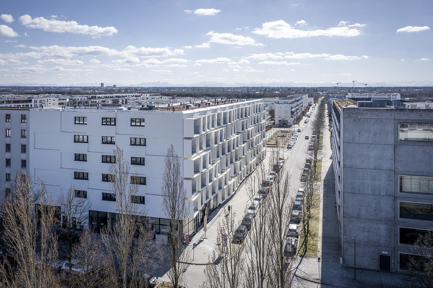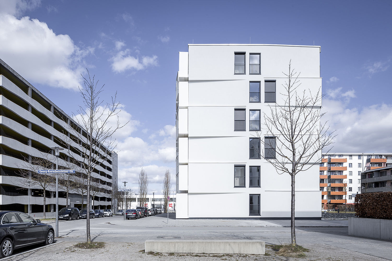 Im Münchner Stadtteil Riem wird der Neubau eines Boardinghauses mit Tiefgarage realisiert.